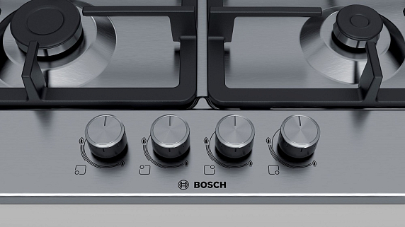 Газовая варочная панель Bosch PGH6B5O90R на 4 конфорки, шириной 58.2 см, нержавеющая сталь