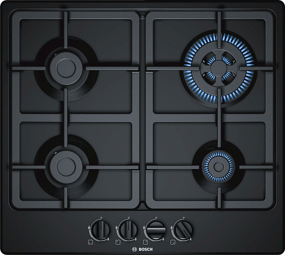 Газовая варочная панель Bosch PGH6B6B90R на 4 конфорки, шириной 58.2 см, черный