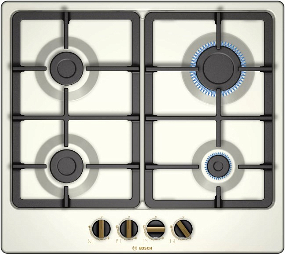 Газовая варочная панель Bosch PGP6B1B90R на 4 конфорки, шириной 58.2 см, жемчужно-белый