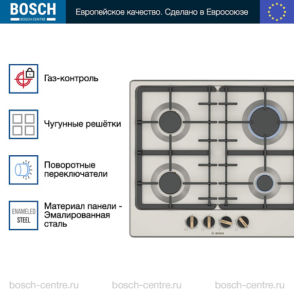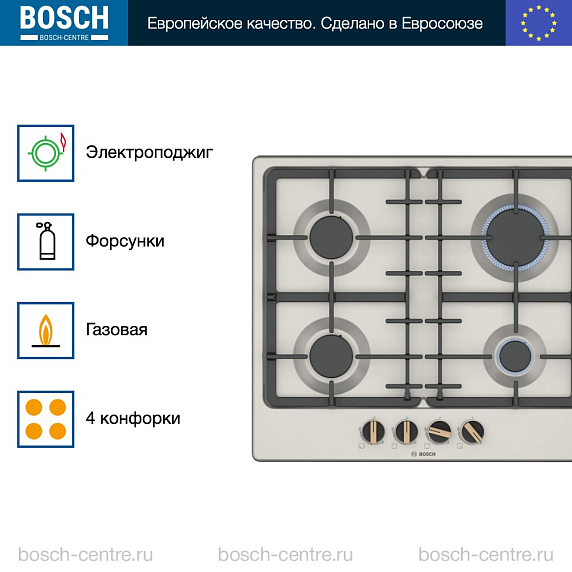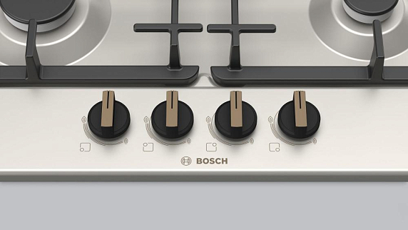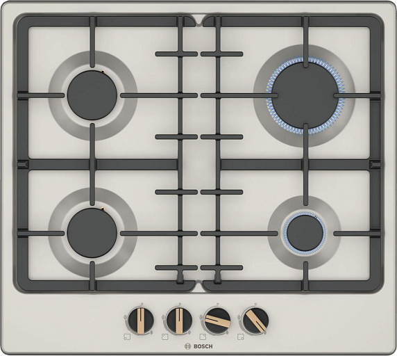 Газовая варочная панель Bosch PGP6B1B92R на 4 конфорки, шириной 58.2 см, жемчужно-белый