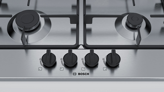 Газовая варочная панель Bosch PGP6B5B60 на 4 конфорки, шириной 58.2 см, нержавеющая сталь