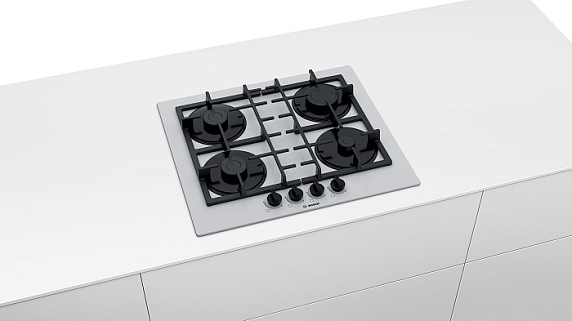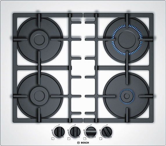 Газовая варочная панель Bosch PNP6B2B90R на 4 конфорки, шириной 59 см, белый