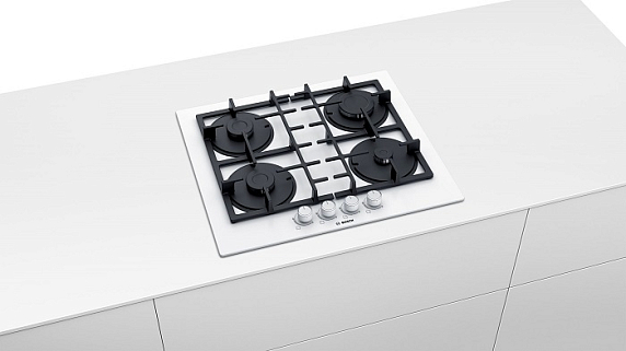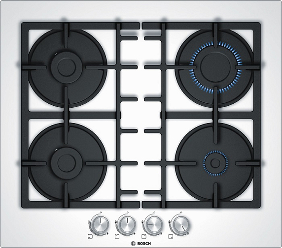 Газовая варочная панель Bosch PNP6B2O90R на 4 конфорки, шириной 59 см, белый