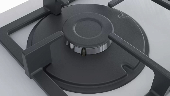 За гладкой поверхностью из стекла легко ухаживать. Электроподжиг включается поворотом регулятора. Термоэлектрическая защита блокирует подачу газа в случае затухания пламени.