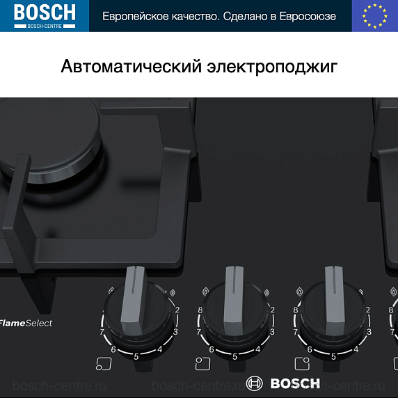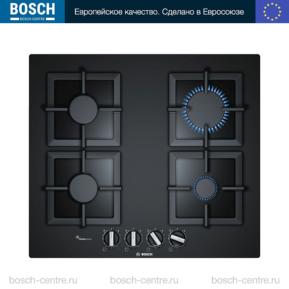 Газовая варочная панель Bosch PPP 6A6B20 на 4 конфорки, шириной 59 см, черный