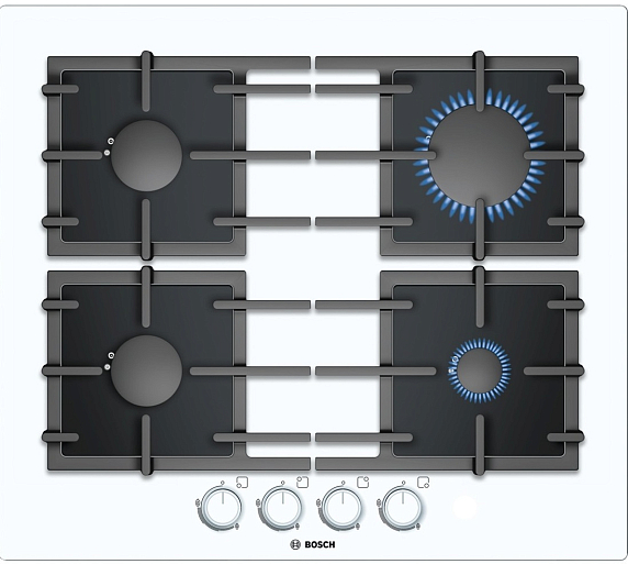 Газовая варочная панель Bosch PPP612B91R на 4 конфорки, шириной 59 см, белый