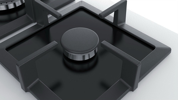 Функция FlameSelect позволяет точно регулировать мощность пламени по 9 ступеням, что позволяет выбирать точные параметры нагрева. Есть возможность установить панель сверху на столешницу и заподлицо. Все конфорки снабжены индивидуальными чугунными решетками, поворотные переключатели имеют эргономичную форму. Термоэлектрическая защита надежно оберегает от утечки газа.