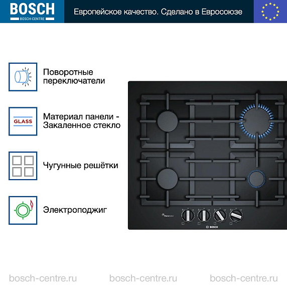 Обзор газовой варочной поверхности Bosch PPP6A6B90