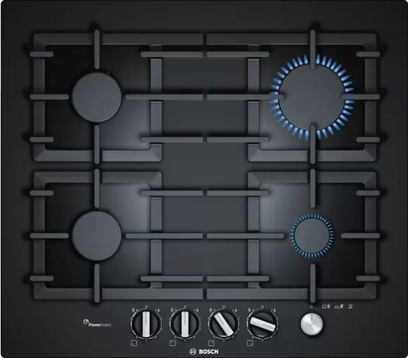 Газовая варочная панель Bosch PPP6A6M90R на 4 конфорки, шириной 59 см, черный