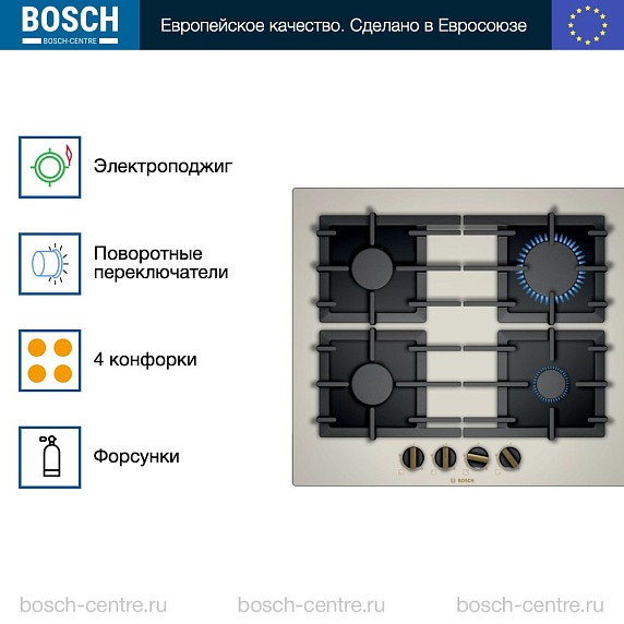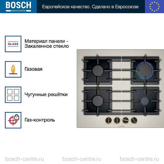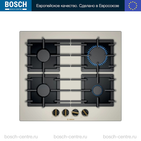 Газовая варочная панель Bosch PPP6B1B90R на 4 конфорки, шириной 59 см, черный