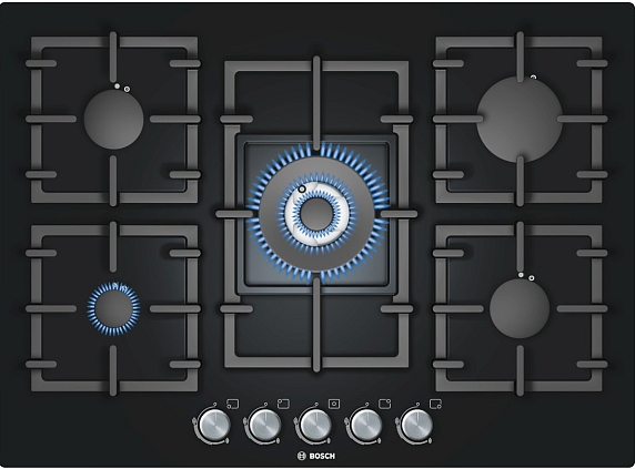 Газовая варочная панель Bosch PPQ 716B91E на 5 конфорки, шириной 71 см, черный