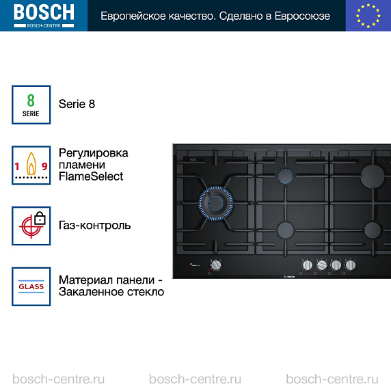 Обзор газовой варочной панели Bosch PRS9A6D70M