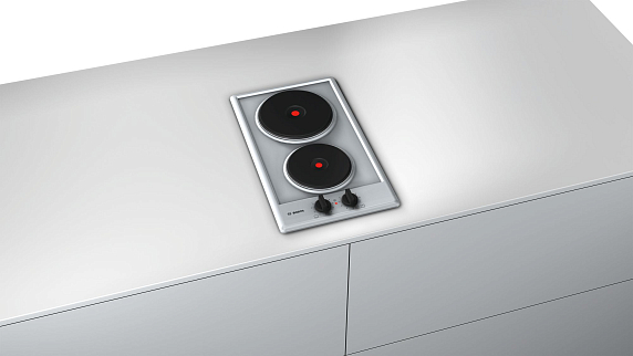 Электрическая варочная панель Bosch PEE389CF1 на 2 конфорки, шириной 28.8 см, нержавеющая сталь