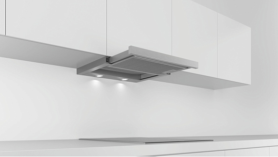 Монтаж в шкаф в вытяжках Bosch — это элегантное решение для встраиваемых кухонь. Вытяжка полностью или частично скрывается внутри навесного шкафа, сохраняя единый стиль интерьера. Корпус встраивается в мебель, а управление и воздухозабор остаются доступными. Подходит для рециркуляции и отвода воздуха. Требует точной подготовки шкафа, но обеспечивает максимальную эстетику и функциональность.