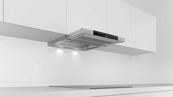 Монтаж в шкаф в вытяжках Bosch — это элегантное решение для встраиваемых кухонь. Вытяжка полностью или частично скрывается внутри навесного шкафа, сохраняя единый стиль интерьера. Корпус встраивается в мебель, а управление и воздухозабор остаются доступными. Подходит для рециркуляции и отвода воздуха. Требует точной подготовки шкафа, но обеспечивает максимальную эстетику и функциональность.