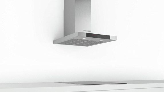 Вытяжка Bosch DWB67JP50 для настенного монтажа избавит кухню от запахов приготовленной пищи, а также убережет мебель от образования жирного слоя.