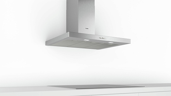Настенный монтаж в вытяжках Bosch — самый распространённый и практичный способ установки. Вытяжка крепится прямо к стене над плитой, занимает минимум места и идеально вписывается в любой интерьер — от классики до хай-тек. Легко монтируется, подключается к вентиляции или работает в рециркуляции. Часто оснащена наклонной панелью для лучшего захвата пара и LED-подсветкой. Подходит для стандартных и угловых кухонь.