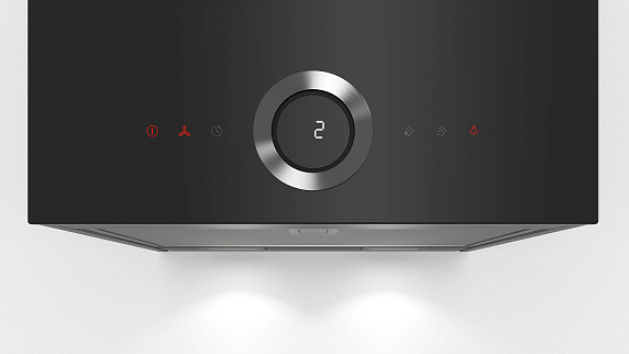 При компактных размерах прибор обладает большой мощностью и работает очень тихо. Система управления гармонирует с другими приборами Serie | 8. Настройки и освещение удобно выбрать поворотом кольца Control Ring. При монтаже все кабели закрываются корпусом. Металлический жировой фильтр можно мыть в посудомоечной машине. Встроенный комплект CleanAir помогает сократить запахи на кухне примерно на 95%.