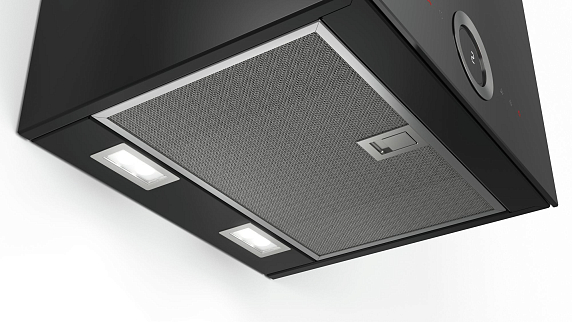 Вытяжка Bosch DWI 37RU60 дизайн «Куб» идеальна для небольших кухонь и варочных панелей шириной 60 см и варио-приборов.