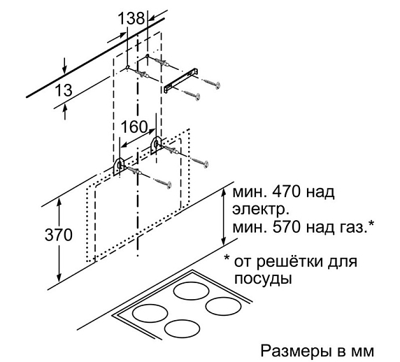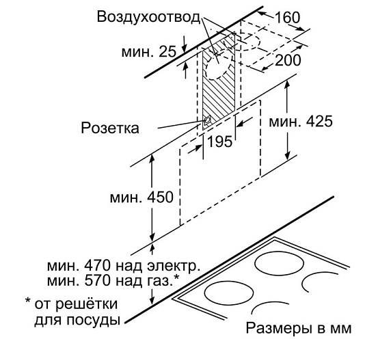 Настенный монтаж в вытяжках Bosch — самый распространённый и практичный способ установки. Вытяжка крепится прямо к стене над плитой, занимает минимум места и идеально вписывается в любой интерьер — от классики до хай-тек. Легко монтируется, подключается к вентиляции или работает в рециркуляции. Часто оснащена наклонной панелью для лучшего захвата пара и LED-подсветкой. Подходит для стандартных и угловых кухонь.