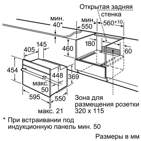 Схема встраивания 1 для духового шкафа Bosch HBC 33B550