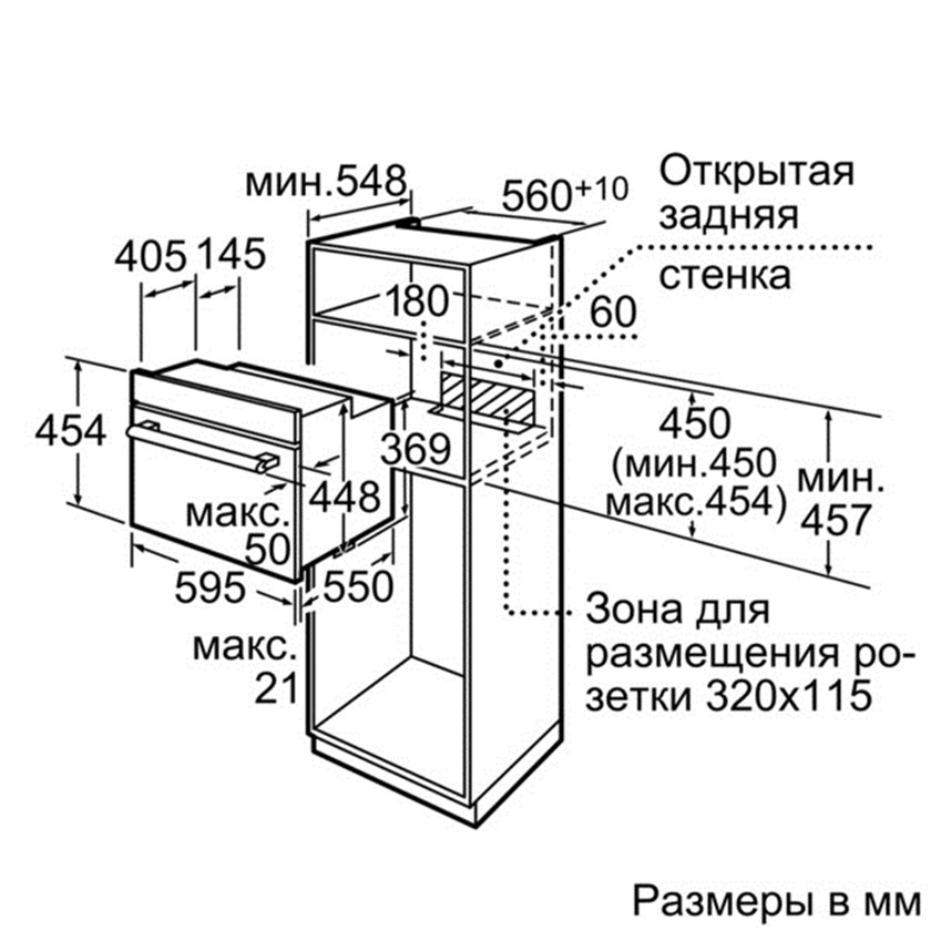 Схема встраивания 2 для духового шкафа Bosch HBC 33B550
