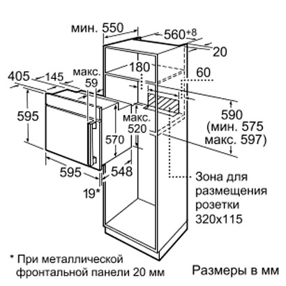 Схема встраивания для духового шкафа Bosch HBR 36B650
