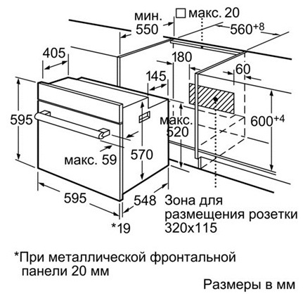 Схема встраивания 1 для духового шкафа Bosch HBN 431S3
