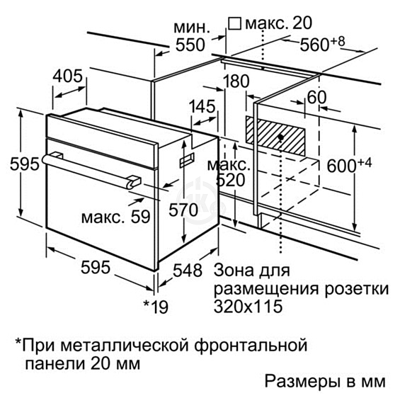 Схема встраивания 3 для духового шкафа Bosch HBN 539E5