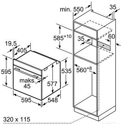 Схема встраивания 1 для духового шкафа Bosch HBG633CB1S