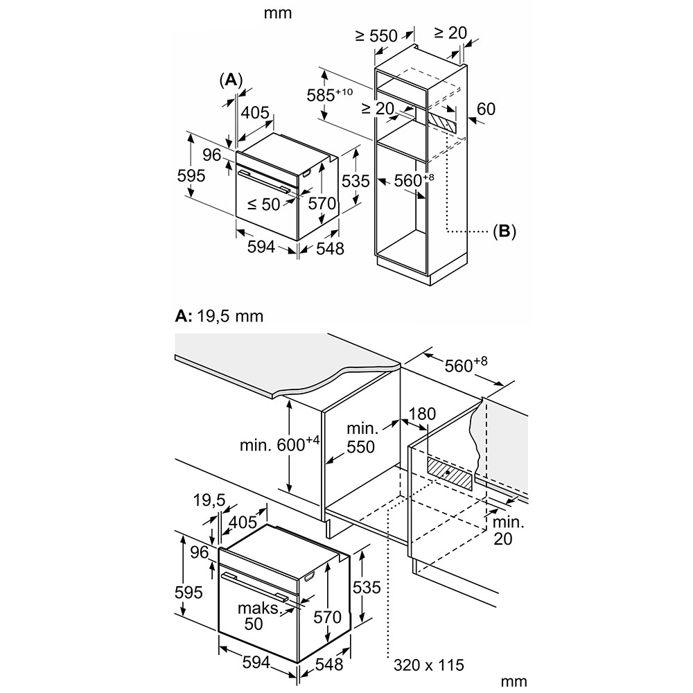 Схема встраивания для духового шкафа Bosch HBA3540B0