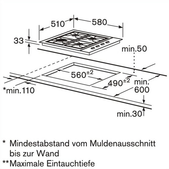 Схема встраивания для варочной панели Bosch NGU 4151 DE