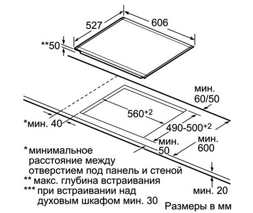 Схема встраивания 1 для варочной панели Bosch PIN 675N27E