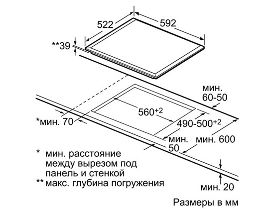 Схема встраивания для варочной панели Bosch NKN 651G17
