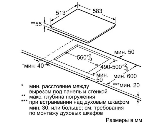 Схема встраивания 1 для варочной панели Bosch PIB 645F17E