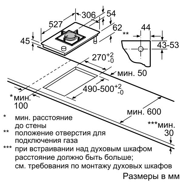 Схема встраивания для варочной панели Bosch PSA326B21E