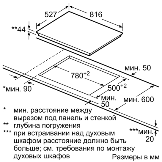 Схема встраивания для варочной панели Bosch PKM875DP1D