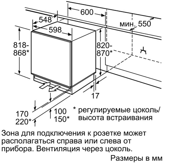 Схема встраивания для морозильника Bosch GUD 15A50 RU