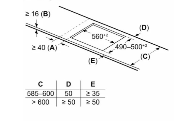 Схема встраивания 2 для варочной панели Bosch PVS631HC1E