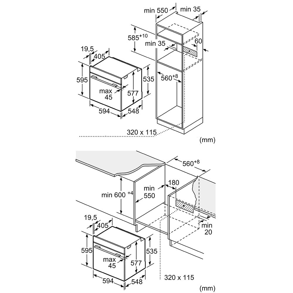 Схема встраивания для духового шкафа Bosch HBG 978NB1S