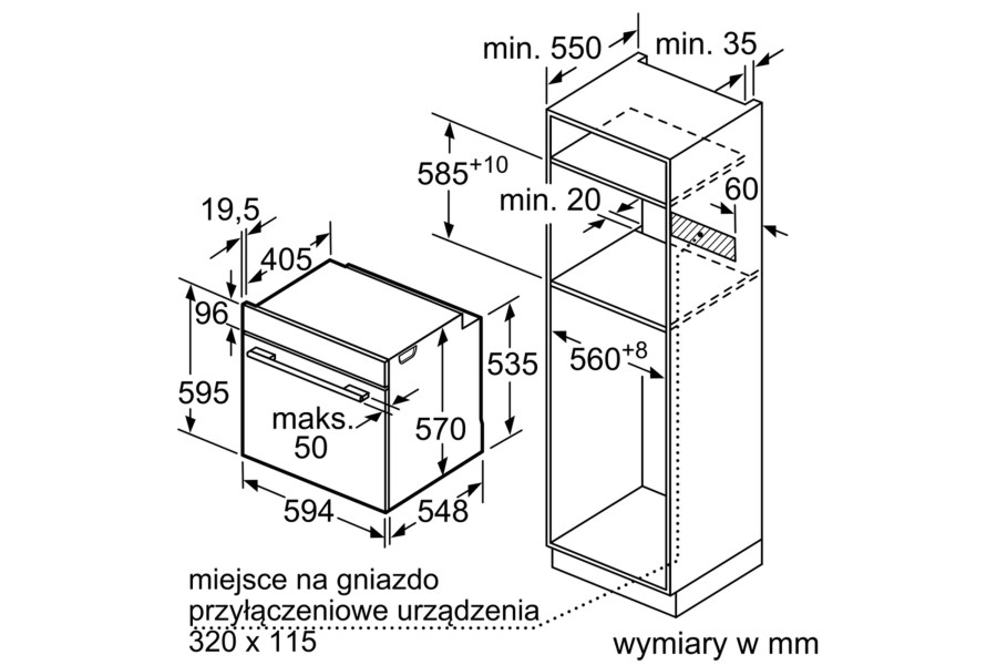 Схема встраивания для духового шкафа Bosch HBG539BB6