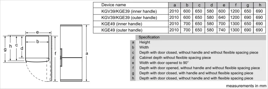 Схема встраивания для холодильника Bosch KGV39VW316