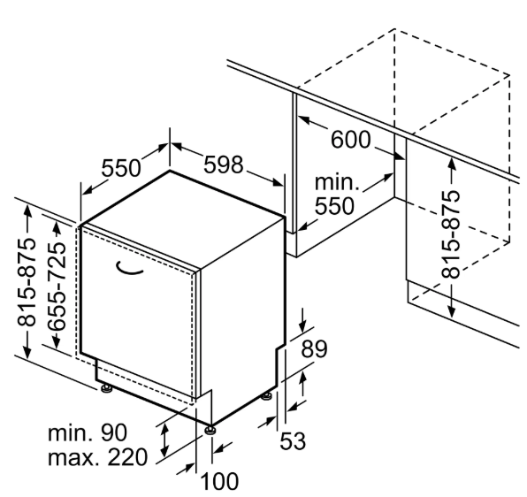 Схема встраивания 1 для посудомоечной машины Bosch SMV6ECX10E