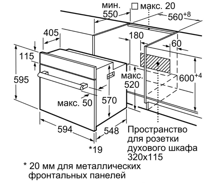 Схема встраивания 1 для духового шкафа Bosch HAF010BA1R