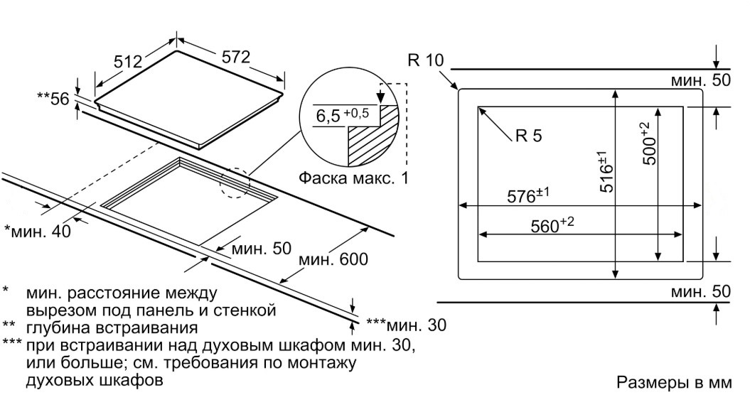 Схема встраивания для варочной панели Bosch PXY621DX6E