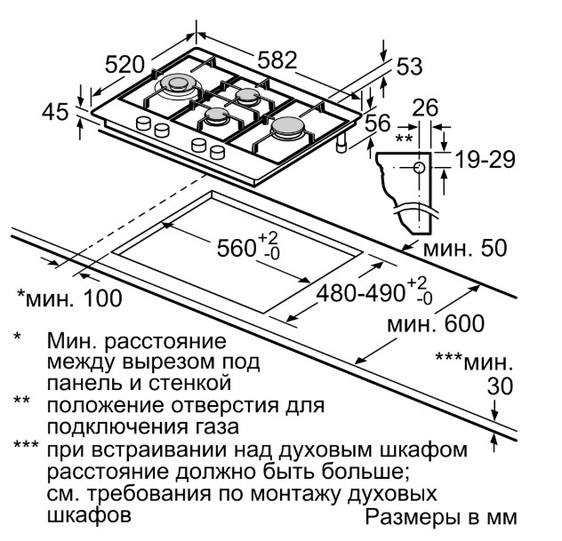 Схема встраивания для варочной панели Bosch PCI6A5B90R