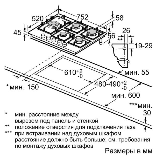 Схема встраивания для варочной панели Bosch PPS7A6M90R OLD