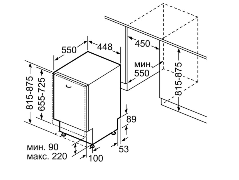 Схема встраивания для посудомоечной машины Bosch SPV2HKX1DR