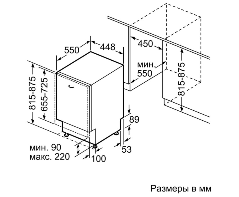 Схема встраивания для посудомоечной машины Bosch SPV2HKX4DR
