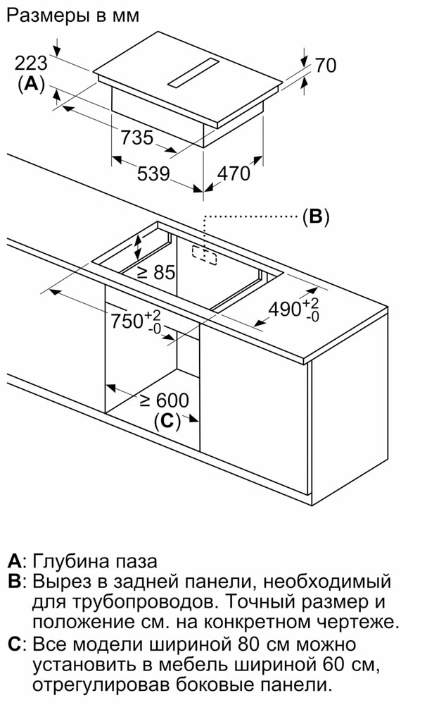 Схема встраивания 14 для варочной панели Bosch PXX875D67E